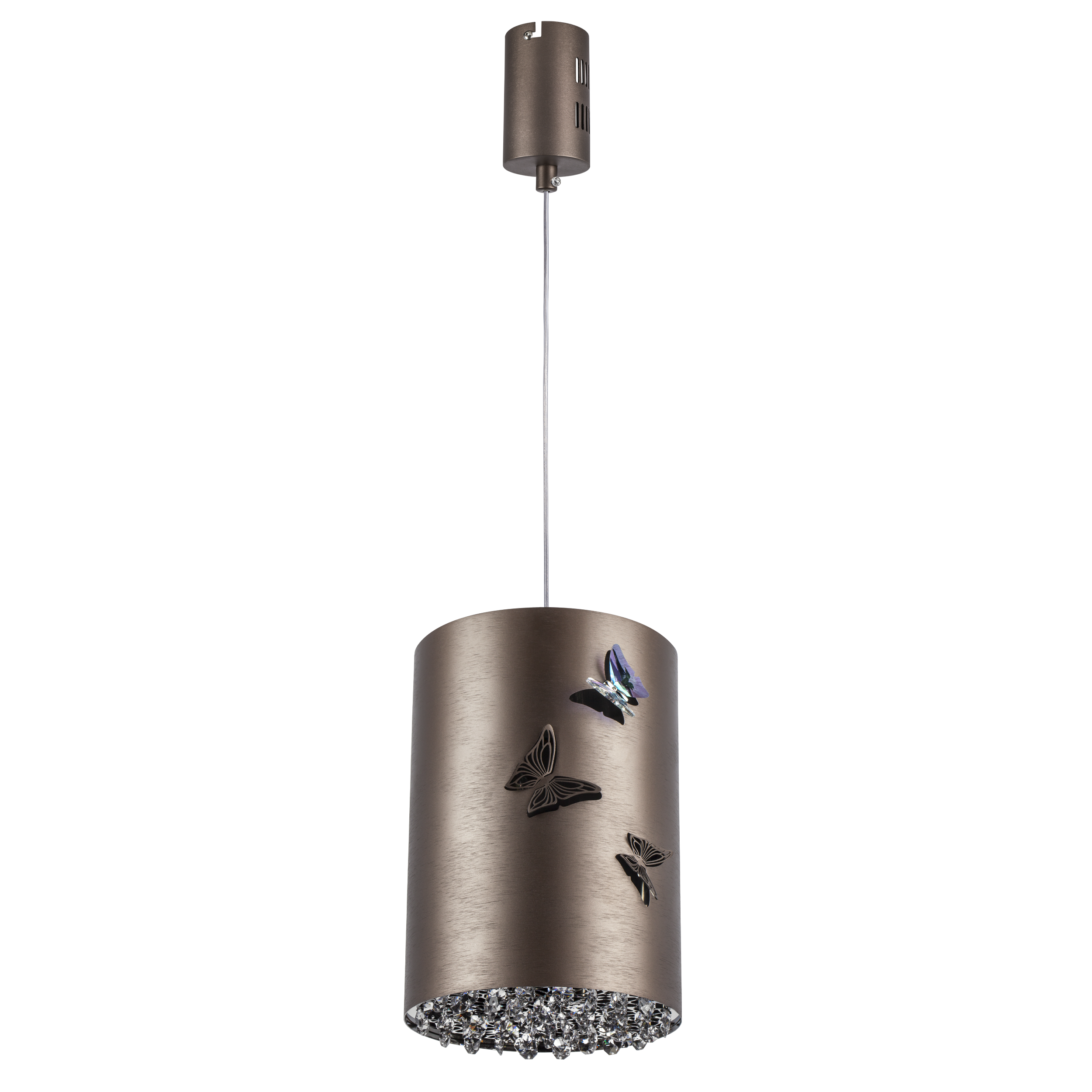 Дизайн: Простая лаконичная форма с корпусом кофейного цвета и хрустальными подвесками идеально вписывается как в классические, так и современные интерьеры.