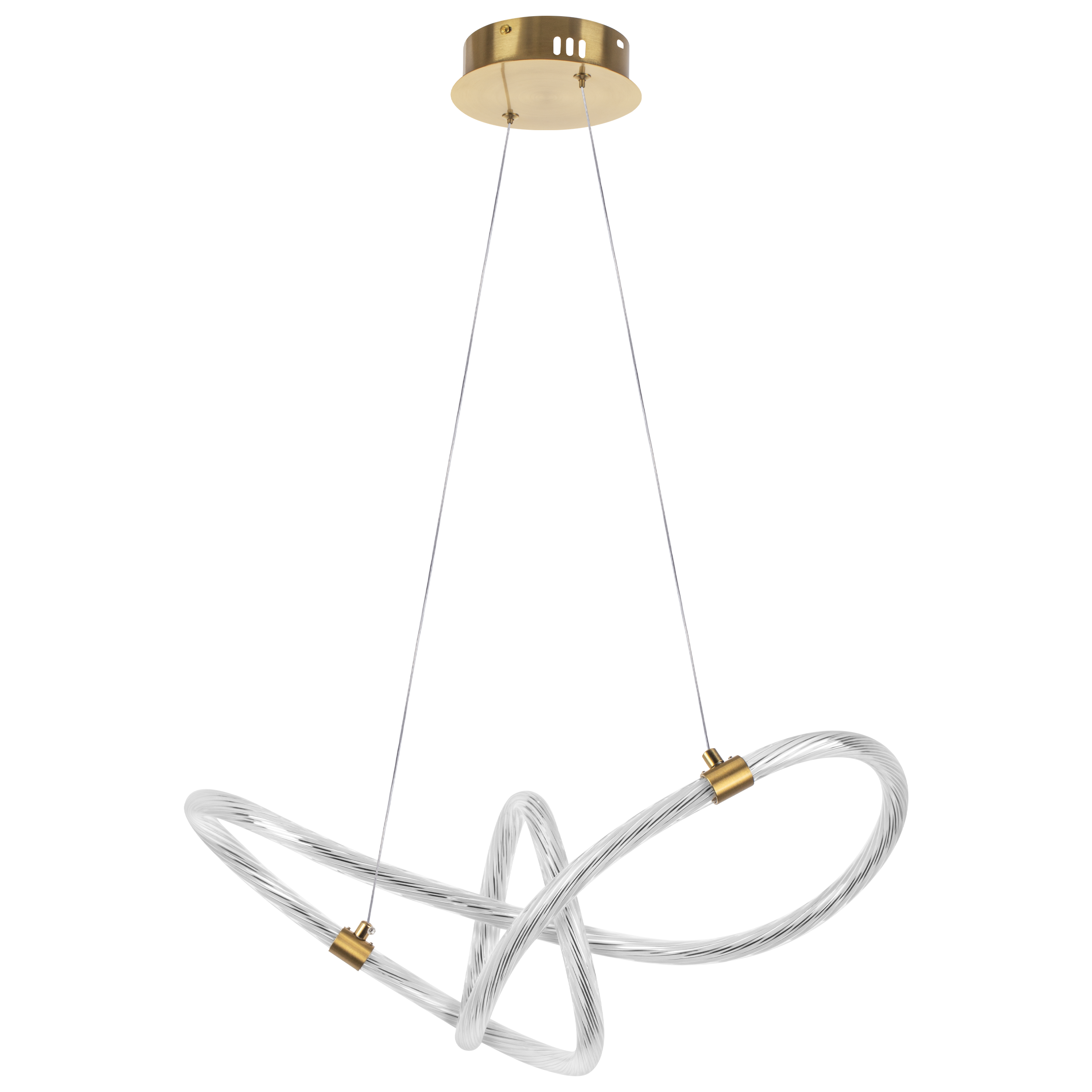 Подвес Corinto 737503 — это современный светильник с модной, востребованной формой. Его гибкая, изогнутая линия с ярким светом закреплена на круглом золотом основании, что делает его выразительным элементом в интерьере.