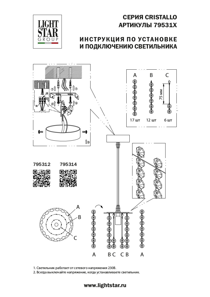 Материалы — металл (арматура хром) и хрусталь.