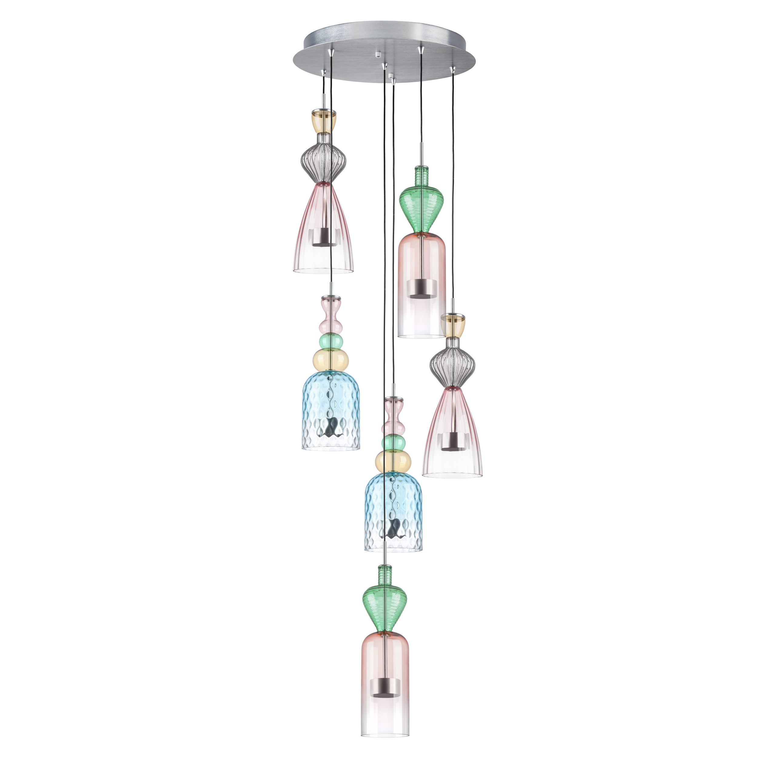 Люстра подвесная Belle — это каскадное произведение искусства. Шесть подвесных элементов из премиального стекла ручного выдува, и каждый со своими уникальными цветами и формами, составляют гармоничную композицию. Комбинация плавных линий с нежными пастельными цветами превращает светильник в центральный элемент любого пространства, будь то гостиная, столовая или зона отдыха.