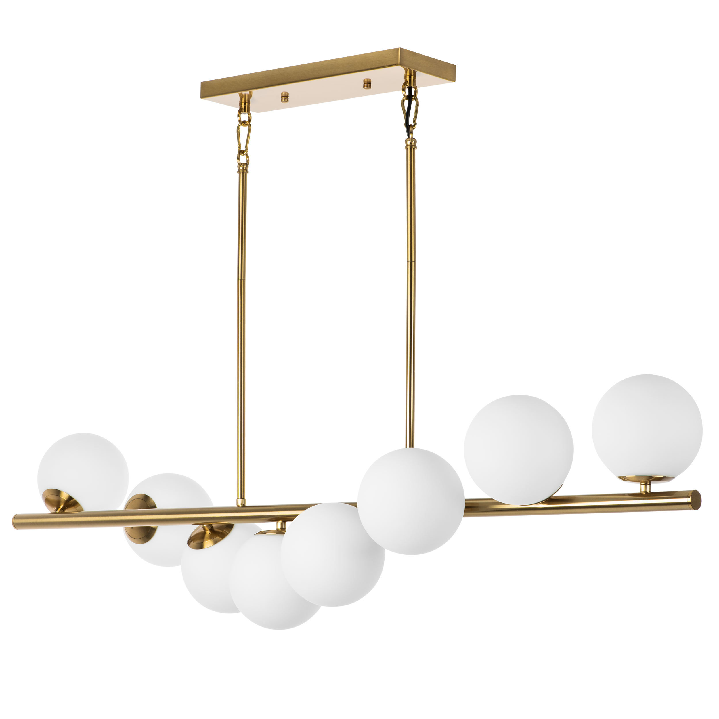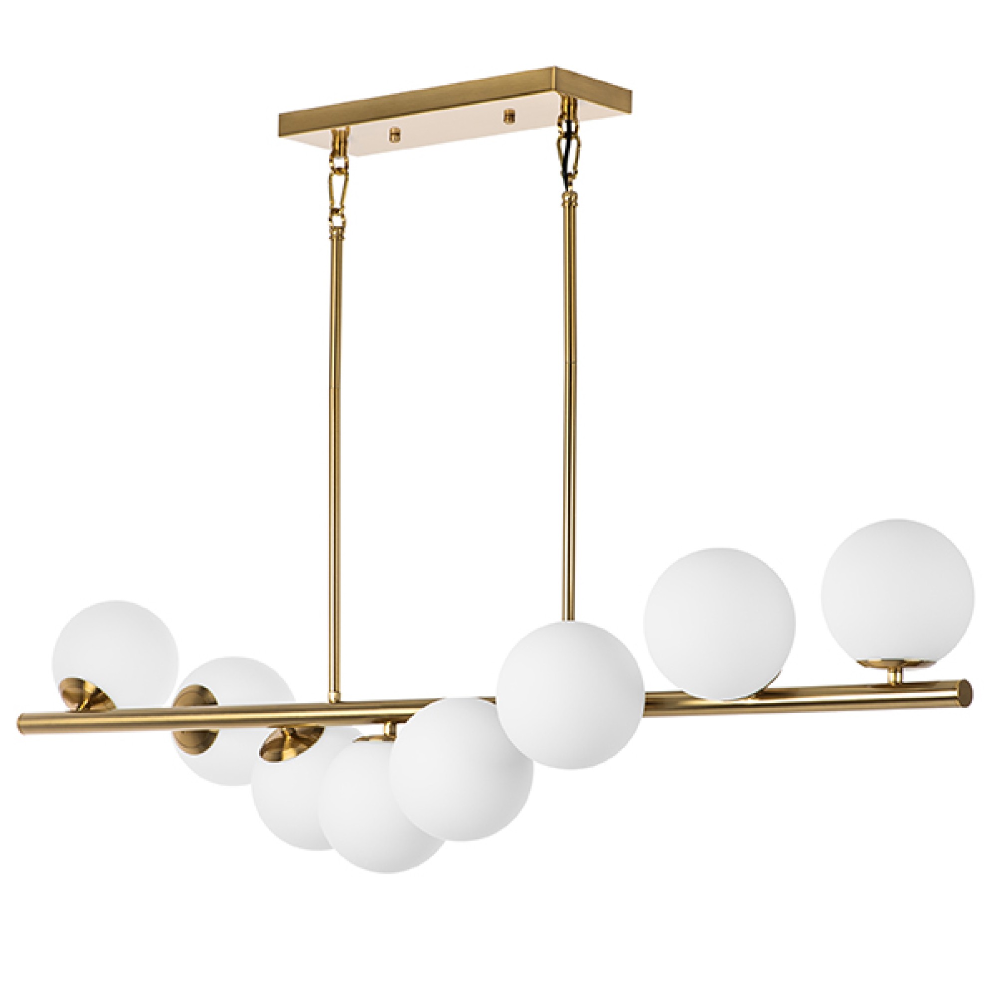Линейная подвесная люстра CROCO 815183 - это превосходный свет и сдержанный универсальный дизайн подходящий почти для всех типов современных частных помещений. Матово-белые стеклянные плафоны расположены равномерно по всей длине и со всех сторон светильника. Такое расположение и матовое поверхность плафонов дают рассеянный, мягкий и комфортный свет без бликов и резких контрастов света и тени. Такого рода линейные модели, как CROCO 815183 особенно хорошо освещают и дополняют удлиненные поверхности и предметы интерьера.