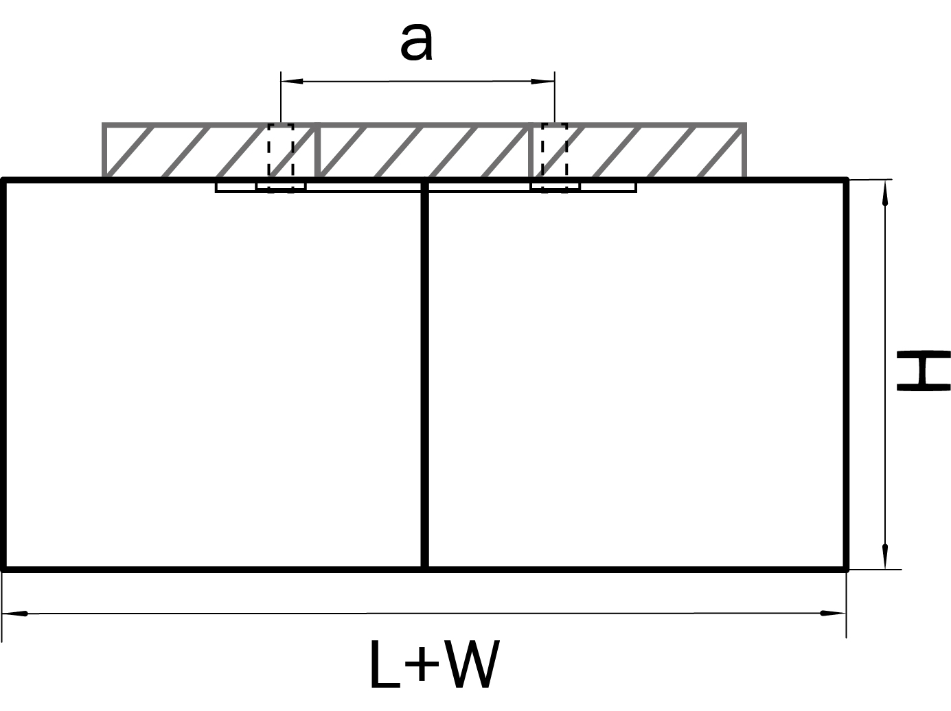 - Расстояние между креплениями (a), мм