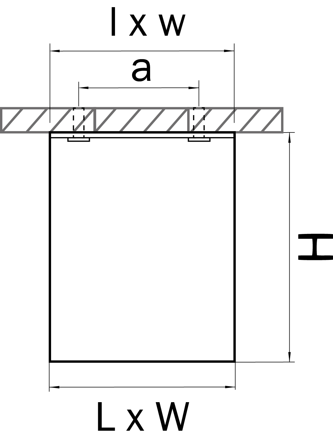 - Расстояние между креплениями (a), мм