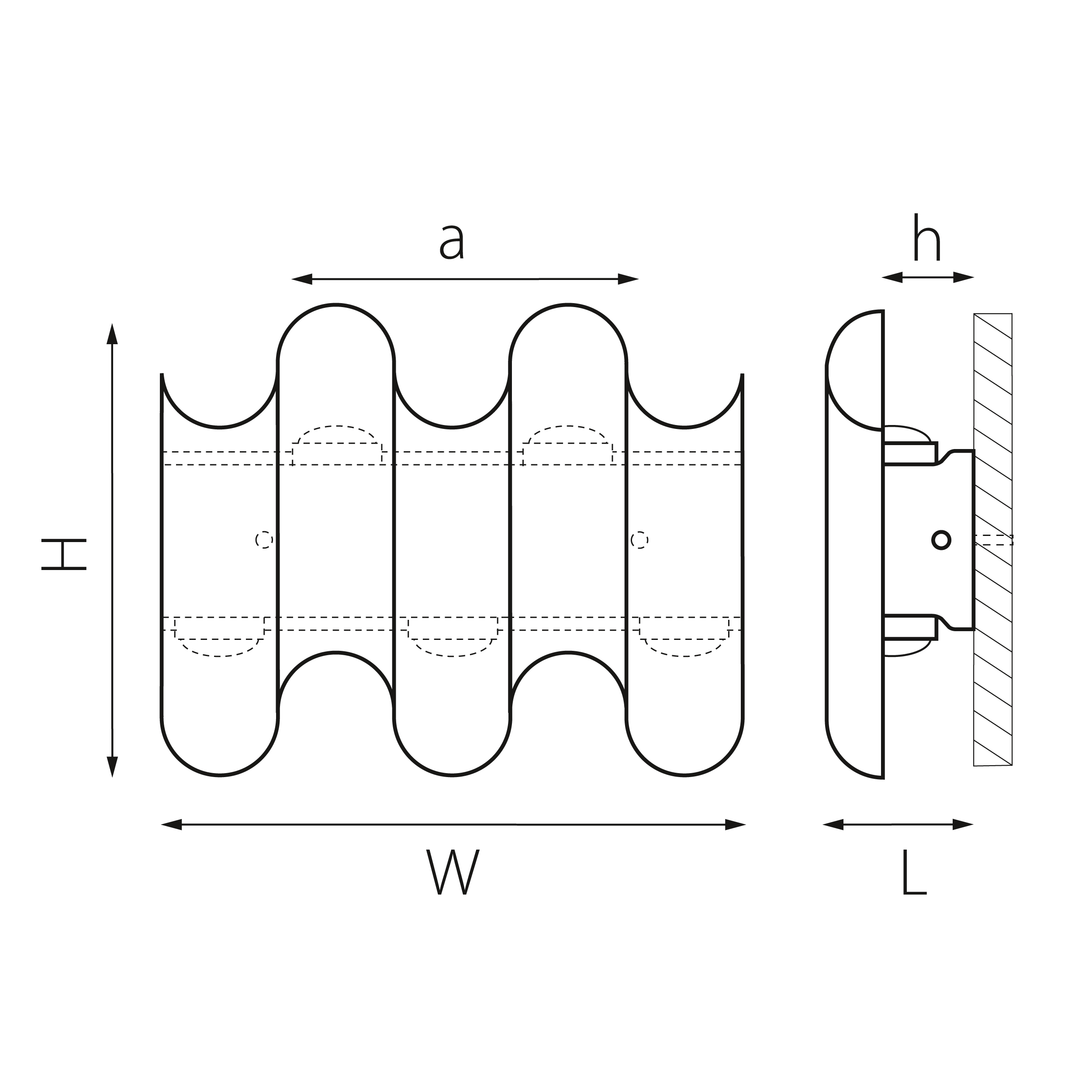 - Расстояние между креплениями (a), мм