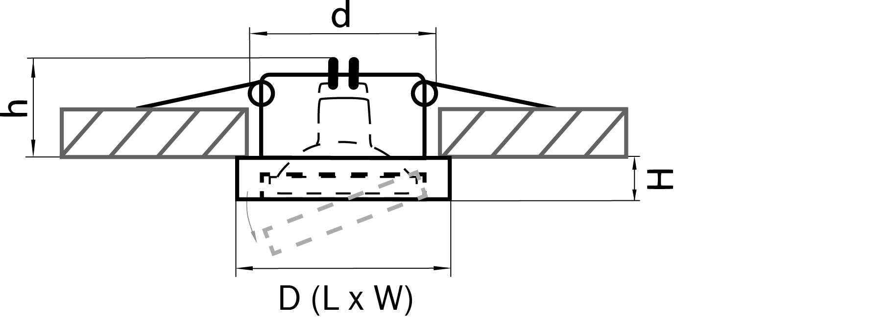 - Глубина (высота) основания (отверстия встройки) (h), мм