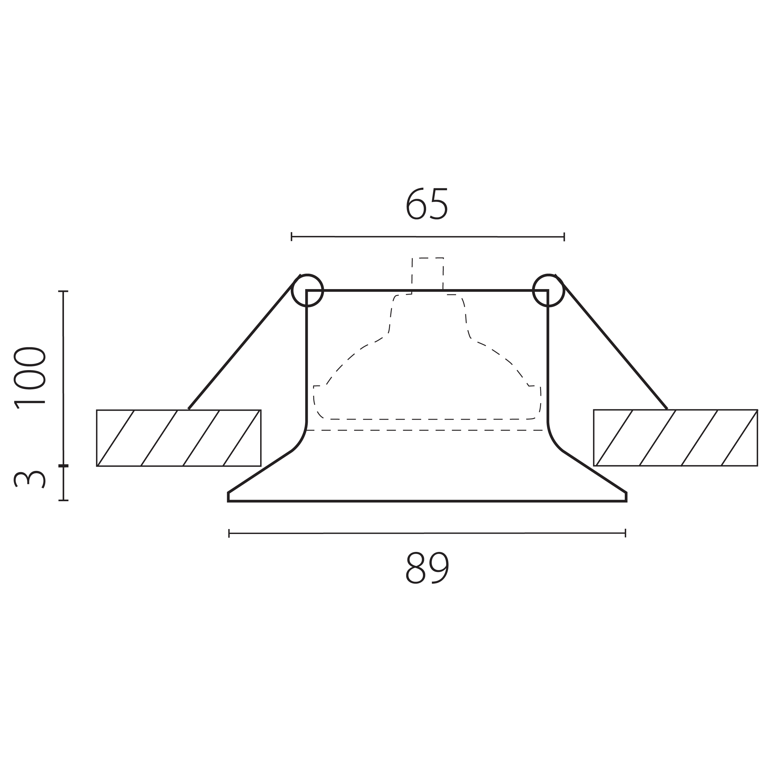 - Глубина (высота) основания (отверстия встройки) (h), мм