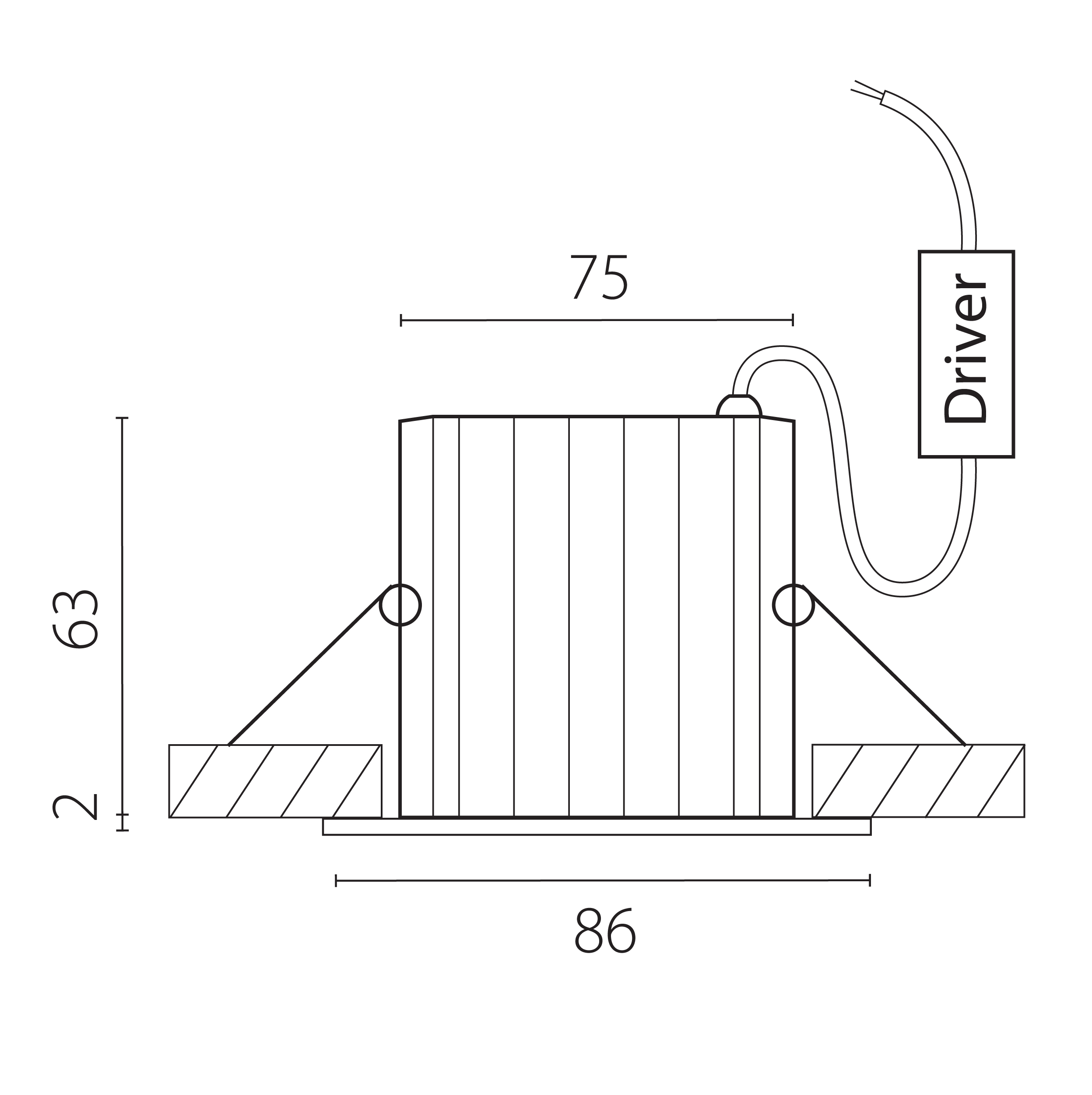 - Глубина (высота) основания (отверстия встройки) (h), мм