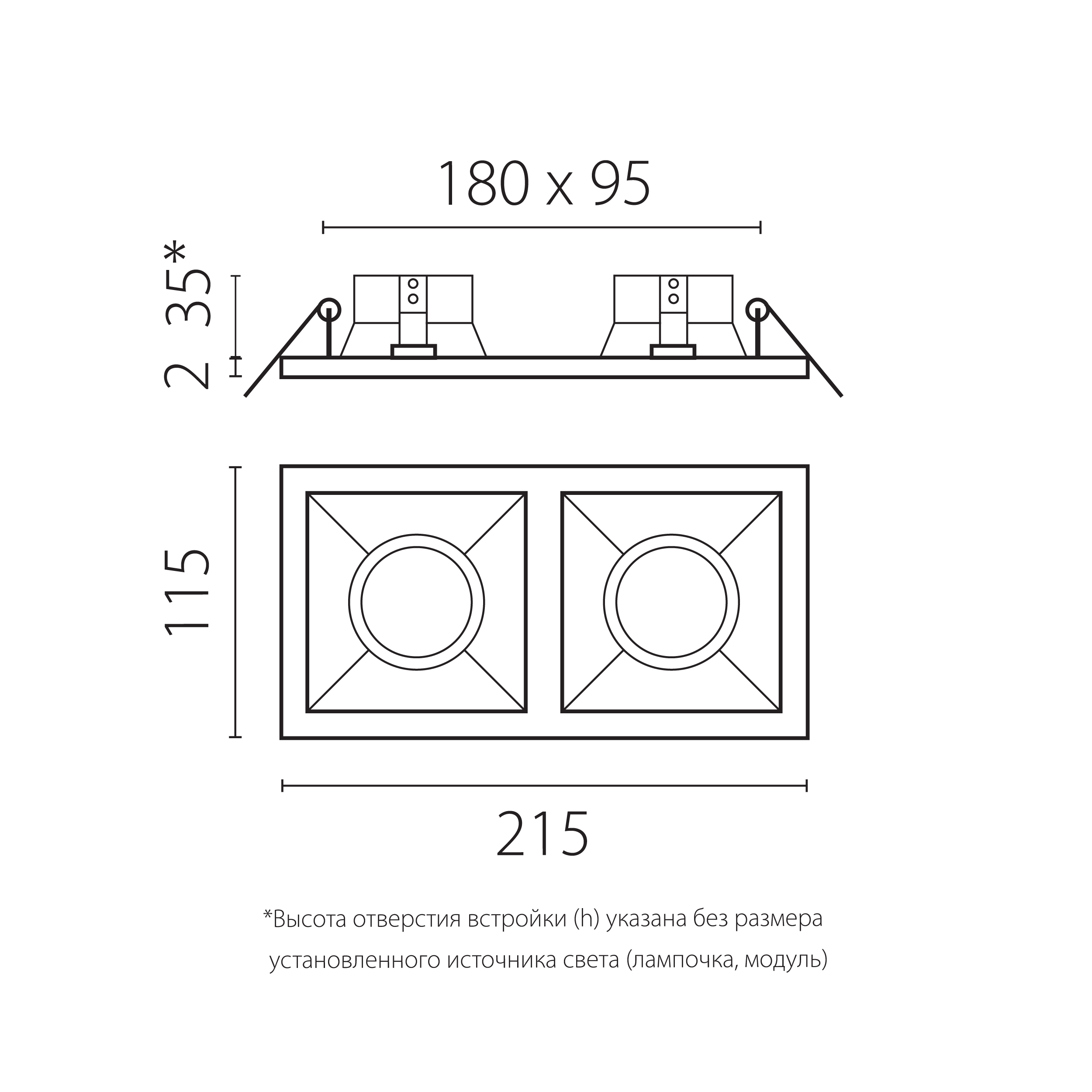 - Глубина (высота) основания (отверстия встройки) (h), мм