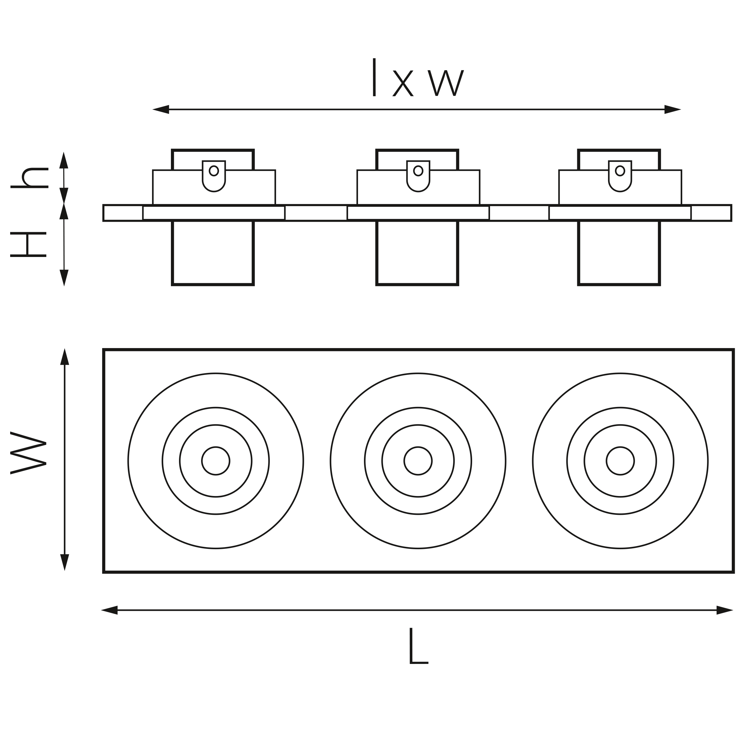 - Глубина (высота) основания (отверстия встройки) (h), мм