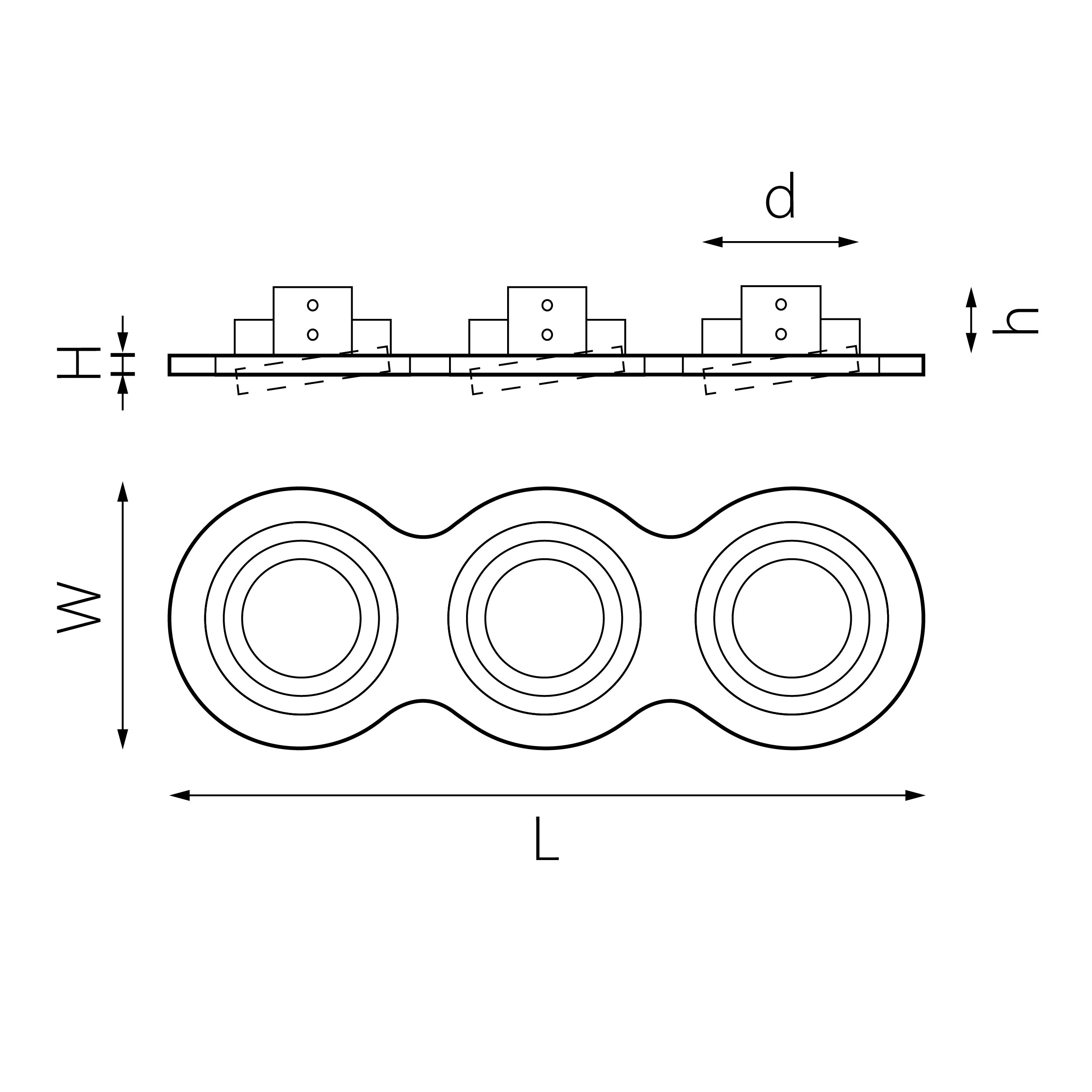 - Диаметр основания (отверстия встройки) (d), мм