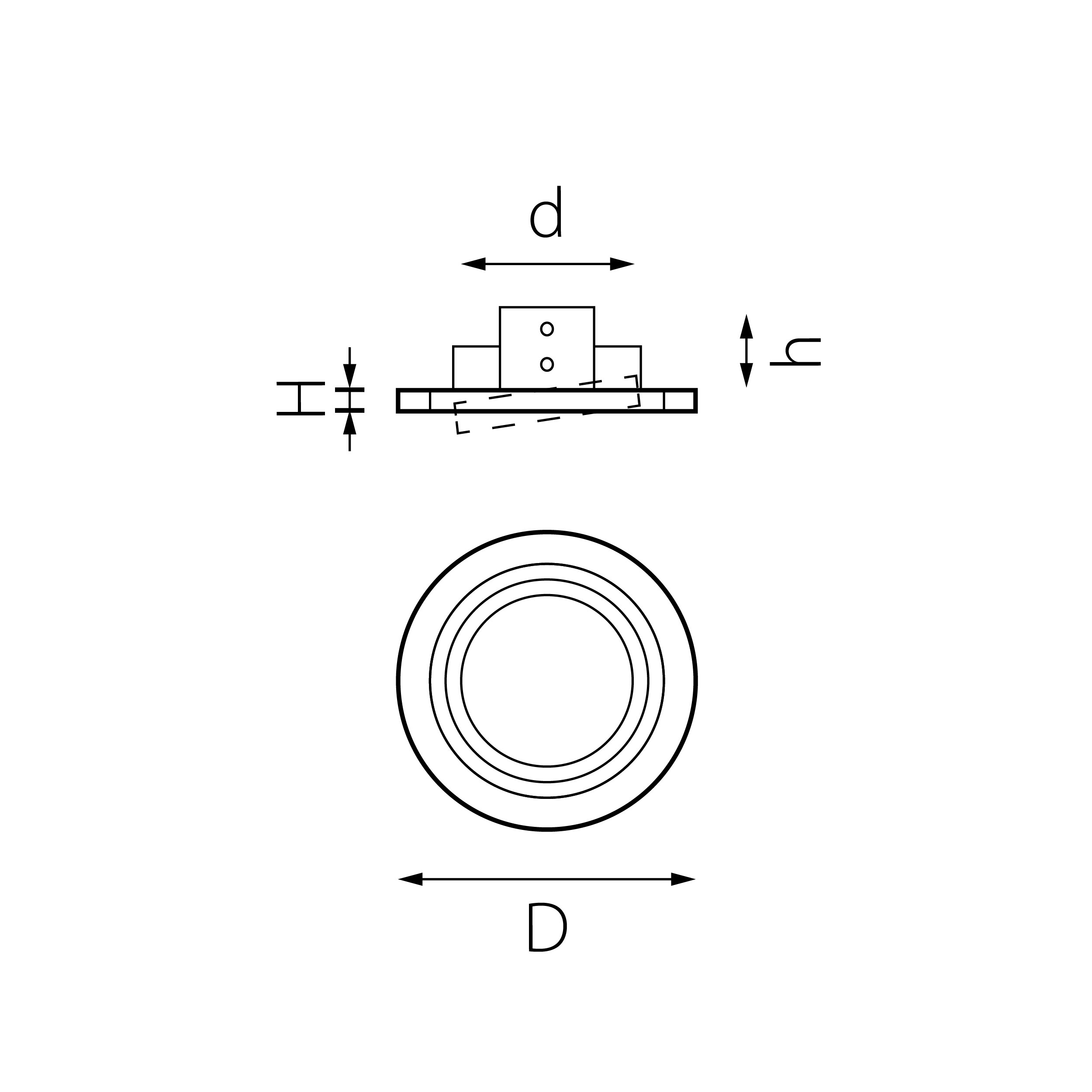 - Диаметр основания (отверстия встройки) (d), мм